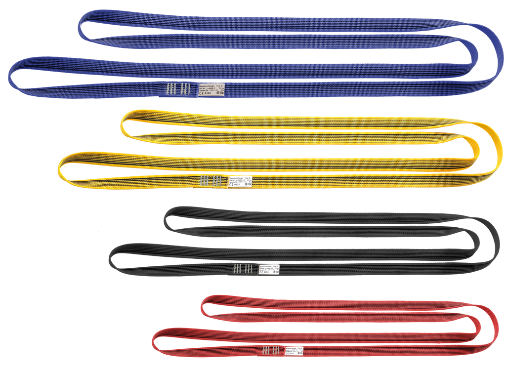 Belt sling with a load capacity of 26kN. Different lengths have different colours so that they can be easily distinguished. Is used in the rope access and rescue sector.