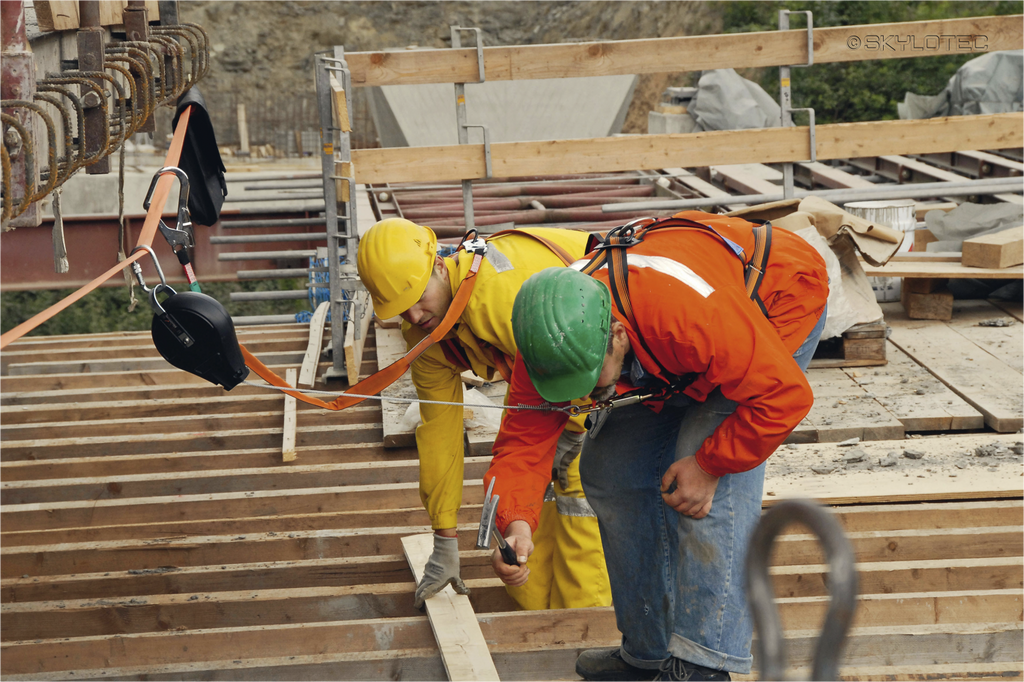 Temporary horizontal securing systems are very popular for assembly work in steel construction, scaffolding and construction in general. LIFELINE HORIZONTAL is a transportable, very quick to assemble and flexible slinging device. It allows two people to work safely over a distance of up to 20 metres. The system's two carabiners are attached to suitable structures such as steel girders, scaffolding frames or concrete columns using slings, for example. The attachment points to be used must be designed for a minimum strength of 11 kN and must not exceed a maximum distance of 20 m.