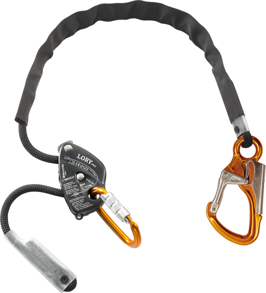 Model: OVALOY TRI/ATTACK LORY is a robust descender and belay device. Its various application areas make the Lory your reliable companion for rope access and rescue (abseiling up to 225 kg load). LORY is used for work positioning, as a restraining device at roofs or slab edges, as a temporary anchor or for fall arrest in flexible cable systems. With LORY, the belaying person can easily feed and take rope. When using the device correctly, it blocks automatically in case of a fall. The LORY PRO model with its unimpeded movement of the cam is the ideal device for industrial purposes. It is equipped with a descent handle that ensures secured and controlled abseiling. The double-stop function blocks if the handle is pulled overly in panic and provides extra safety.